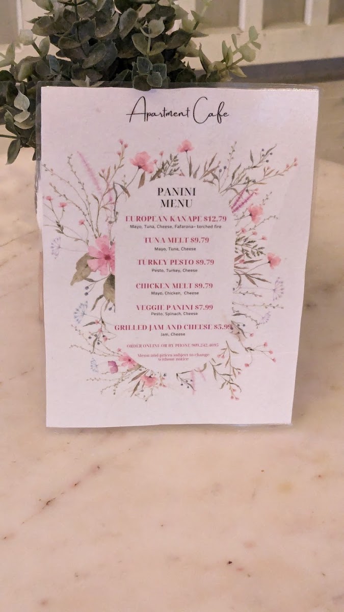 Apartment Cafe Menu